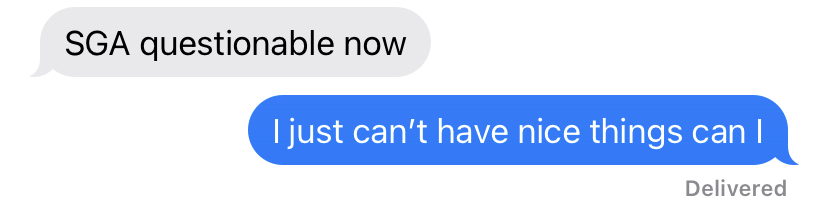 Intriguing that ESPN would list him as out, only to have him be bumped up to questionable hours later. But don’t worry, it got worse.